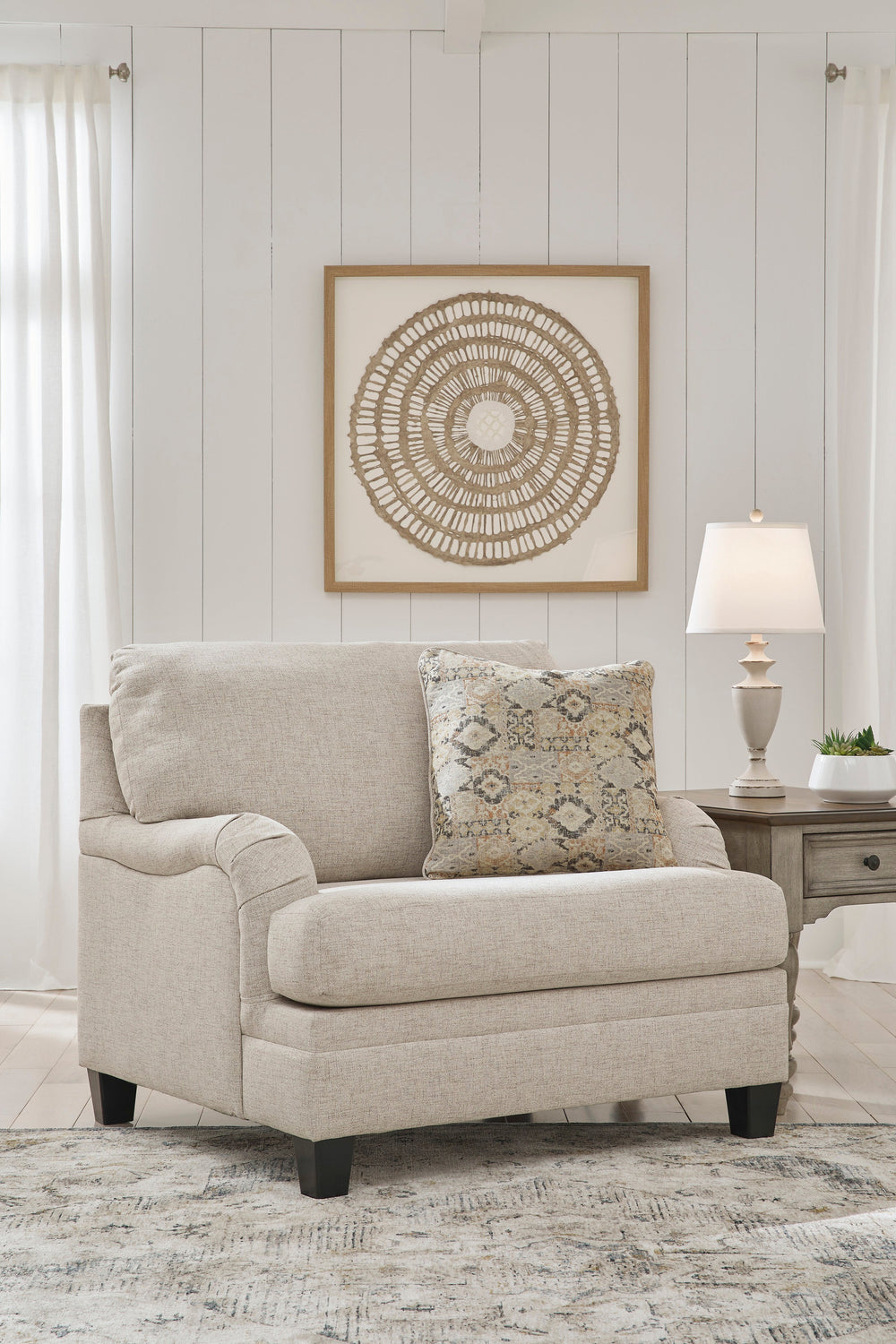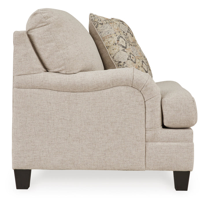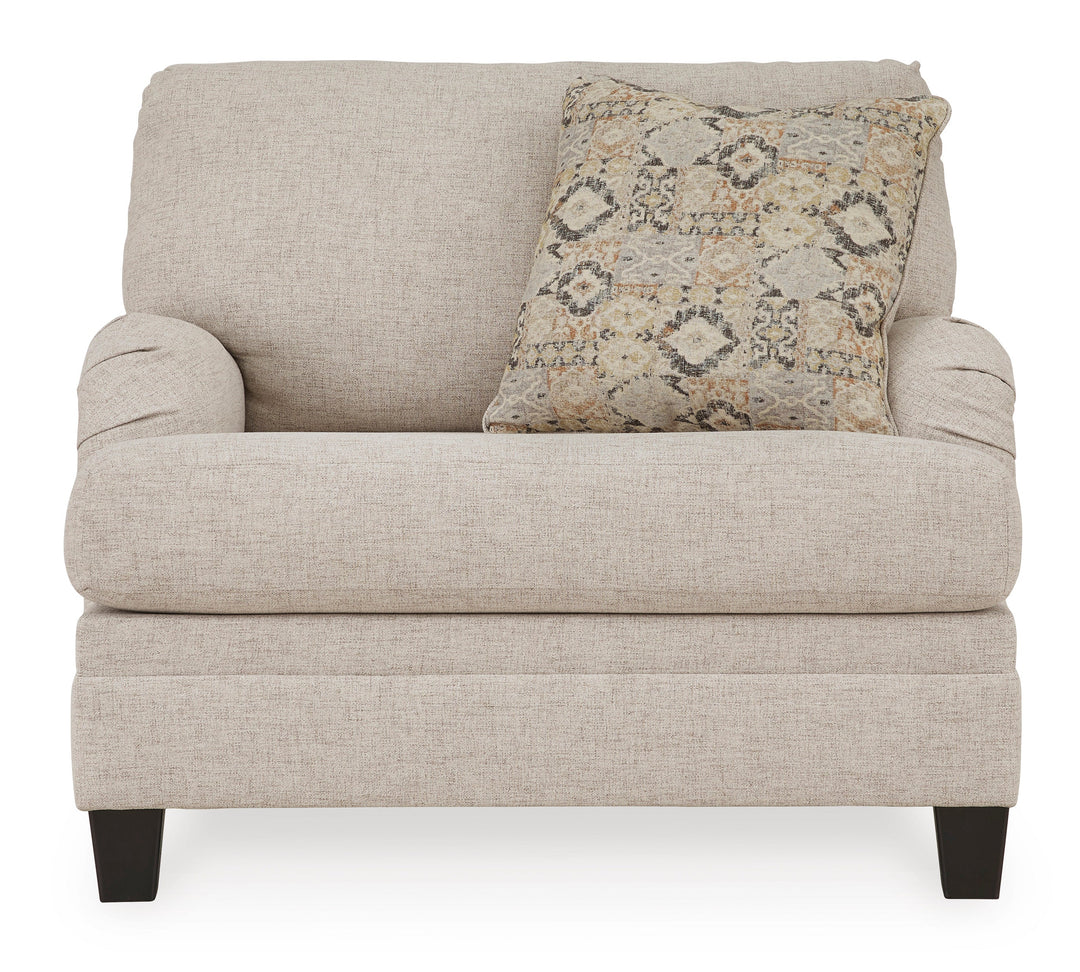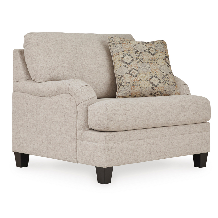 Corner-blocked frame;Attached back and reversible seat cushion;High-resiliency foam cushions wrapped in thick poly fiber;Accent pillow included;Pillow with soft polyfill;Polyester upholstery;Exposed feet with faux wood finish;Platform foundation system resists sagging 3x better than spring system after 20,000 testing cycles by providing more even support;Smooth platform foundation maintains tight, wrinkle-free look without dips or sags that can occur over time with sinuous spring foundations