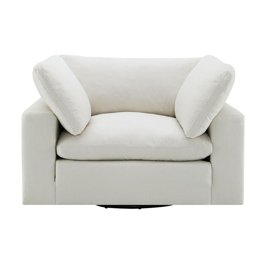The Cloud Swivel Chair is desperately missing from your home! This Swivel Chair will most likely be the most comfy piece of furniture you ever own; even more cozy than your own bed. Down filled feathers and 5" high density foam are what give this Cloud Swivel Chair its shape and comfort. The durable linen fabric ensures that this piece will be long lasting and the transitional style ensures it will be a staple in your home year after year.