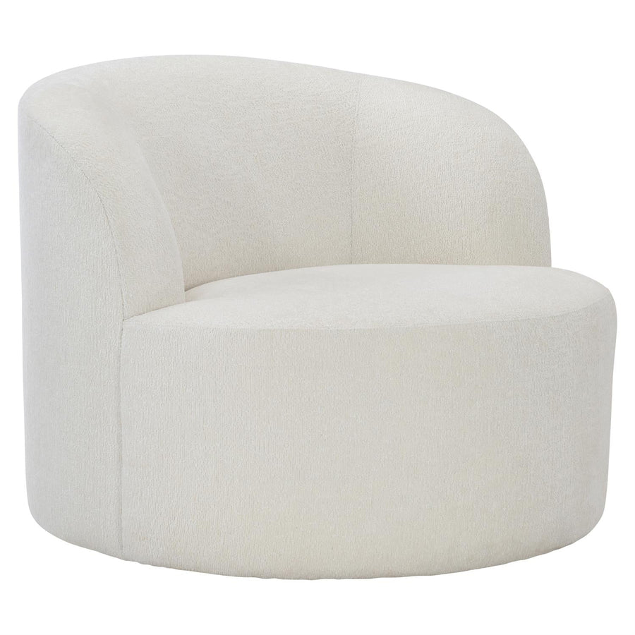 Sinuous curves and luxurious upholstery give the Elle swivel chair a cloud-like softness. Inspired by a traditional club chair design, the encircling back sweeps around to create a sheltering effect. The seat flows to the floor, and a swivel base allows a 360-degree movement.