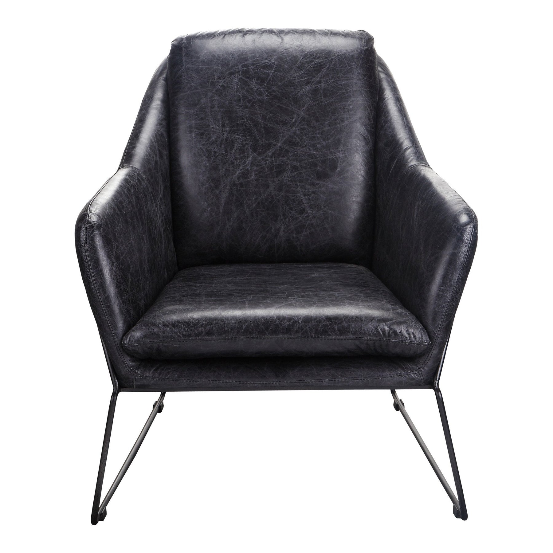 The Greer club chair is a beautiful modern design that will attract the eye with its sleek look. The cushions are made from handsome black leather, and there is a lovely black iron frame that surrounds the chair.