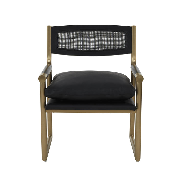 The Harlow chair has a classic mid-century design with a stylish twist. This piece boasts clean lines and warm wooden tones, paired with soft vegan leather upholstery. Featuring rattan details and a gold stainless steel frame, the versatile Harlow will make the perfect head chair at any dining table or be used as an accent chair in your living room!