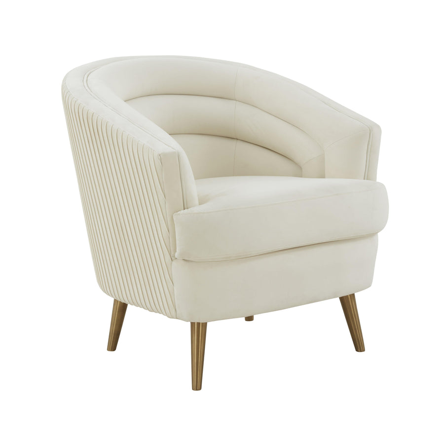 Introducing the Jules Accent Chair from our Inspire Me! Home Decor x TOV collaboration. We dreamed up the perfect chair featuring a ruched pleated back and deep tufting in the front, finished with brass stainless steel legs. Jules will surely add an element of glamour to any space!