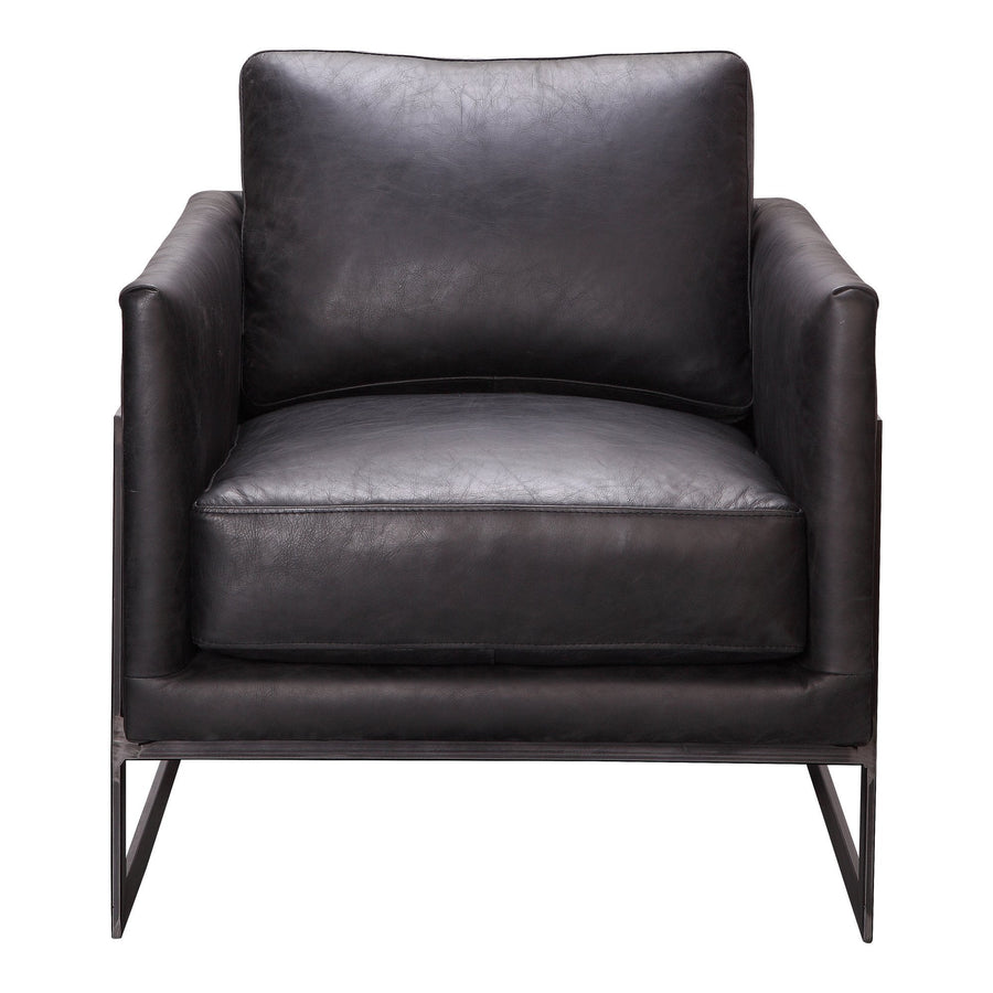 Functional comfort and simplistic modern form combine in this stately silhouette—a sophisticated occasional chair that brings an understated elegance to any living space. The Luxley club chair is fully upholstered in top-grain leather with a deeply comfortable seat and an eye-catching semi-cantilevered frame design. Relax, reflect and redefine comfort and style with the straight, clean lines and resounding ease of this statement piece.