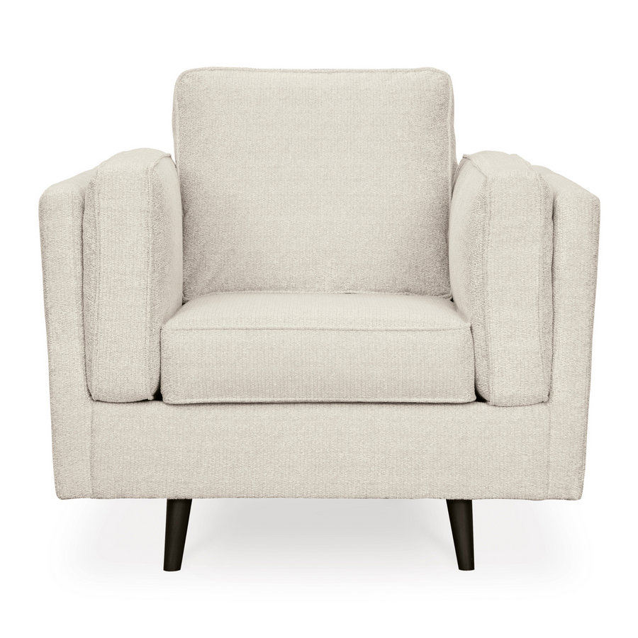 The Maimz chair is mid-century revival done to perfection. Linear and minimalistic, the beautifully edited profile has all the retro elements you love, like sheltering arms, bolster pillows and tapered splayed legs. So casually cool, the crisp fabric upholstery brings the look right into the present.