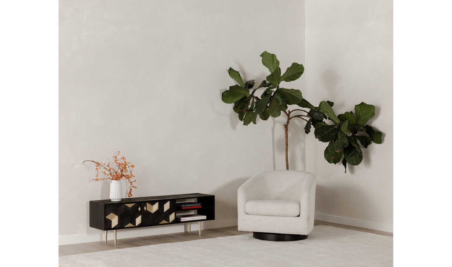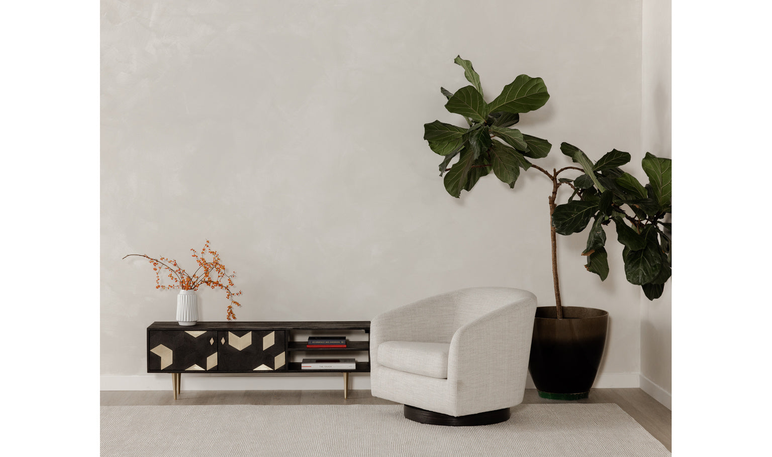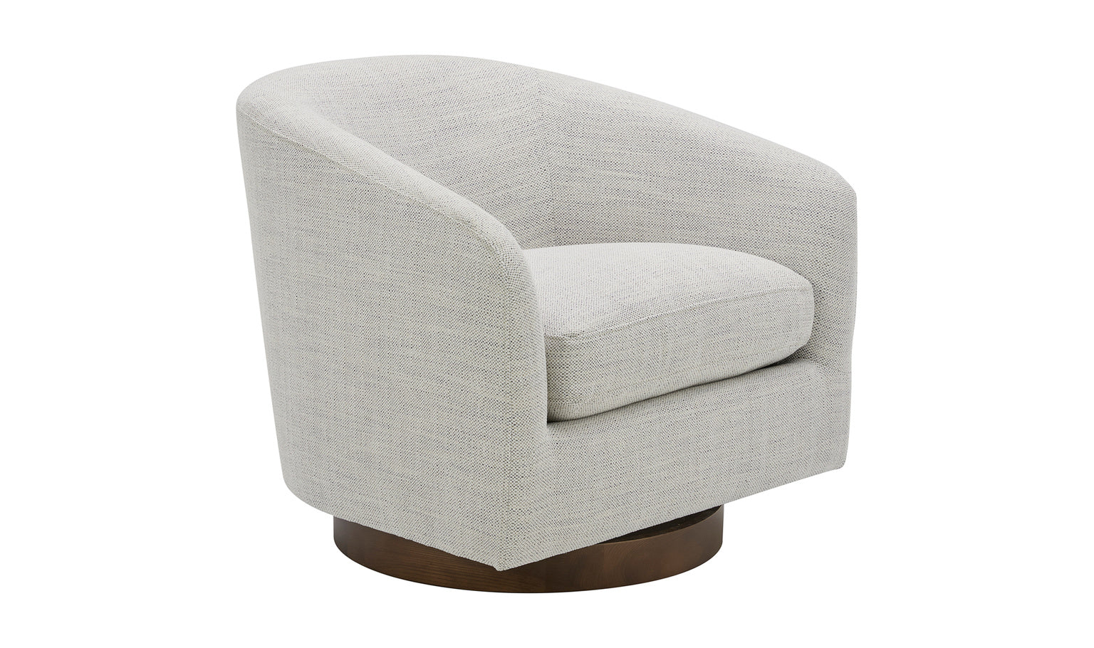 Light and cheerful. Calm and relaxed. The Oscy swivel chair is a cloud of comfort that brings airy energy and convenience into your living room with its 360° swivel, floating base design. Idyllic for a reading nook or as an accent chair, Oscy creates a chic retreat with softly textured fabric upholstery that looks fresh and keeps things cozy.