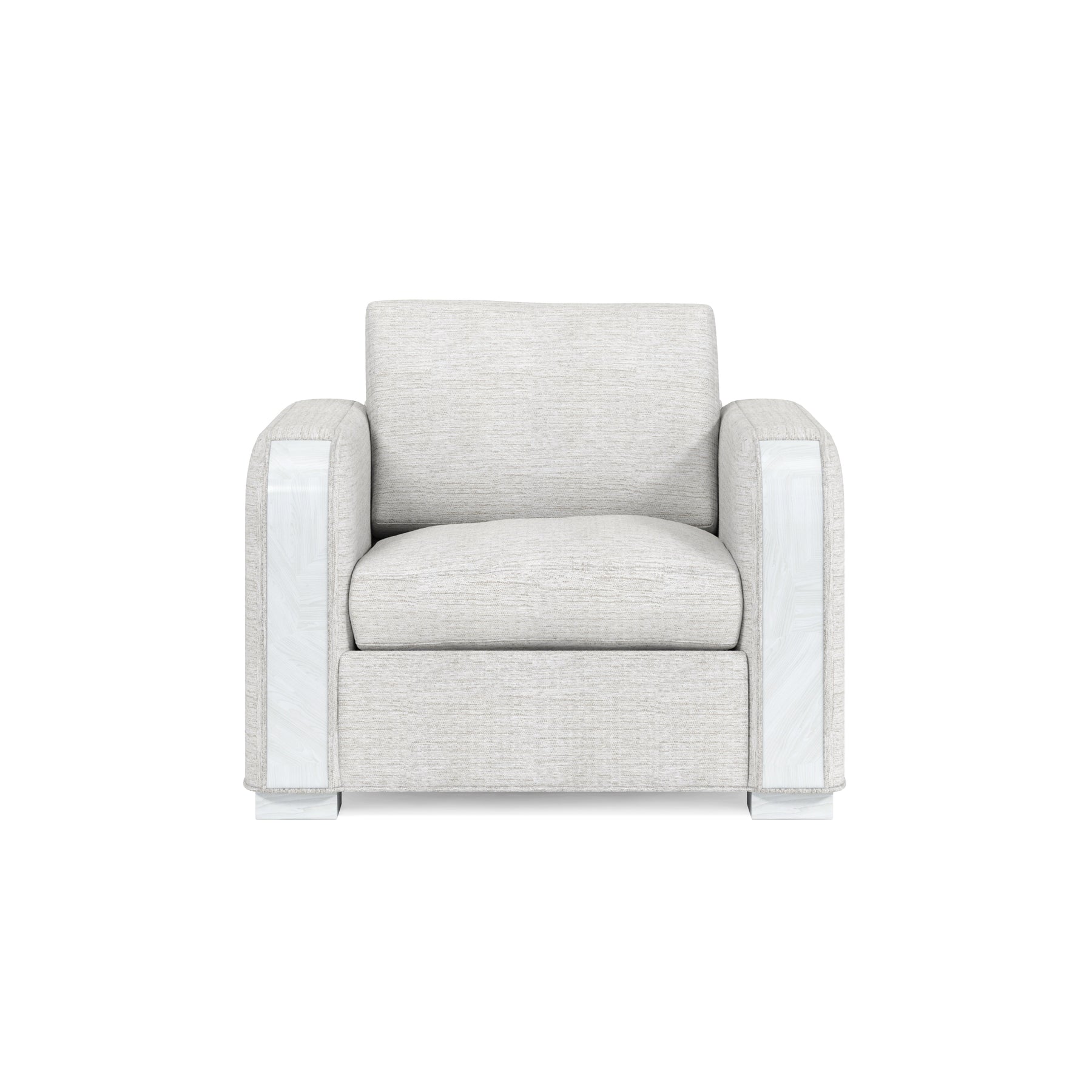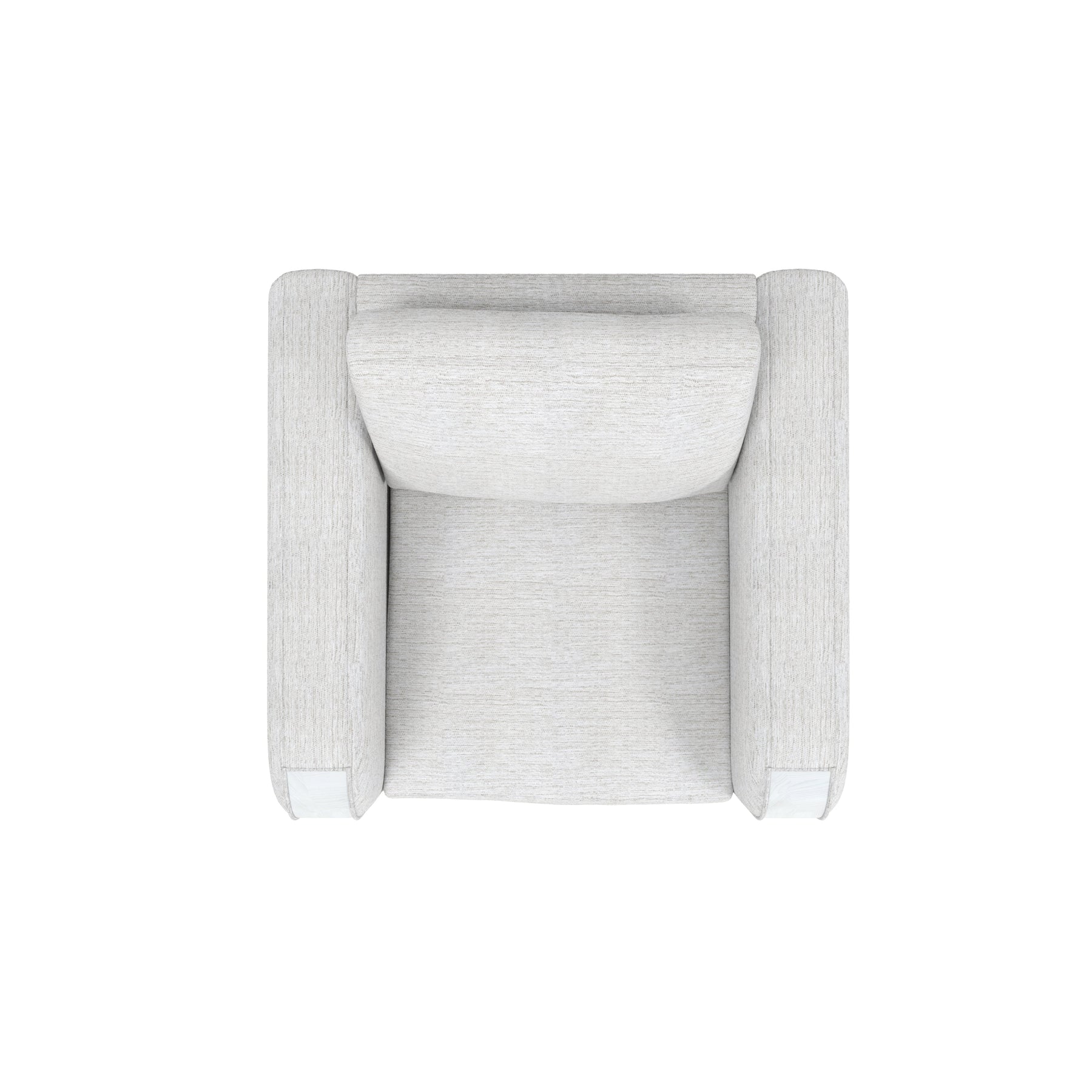 | Features | Low profile, contemporary silhouette, Hardwood frame with exposed wood arms in a driftwood finish, One (1) loose blend-down back cushion, Sineous spring seat construction with one (1) removable pocketed coil seat cushion, Polyester fabric upholstery in a porcelain colorway, No toss pillows included |