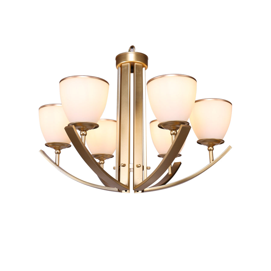 METAL CHANDELIER WITH 6 GLASS SHADES