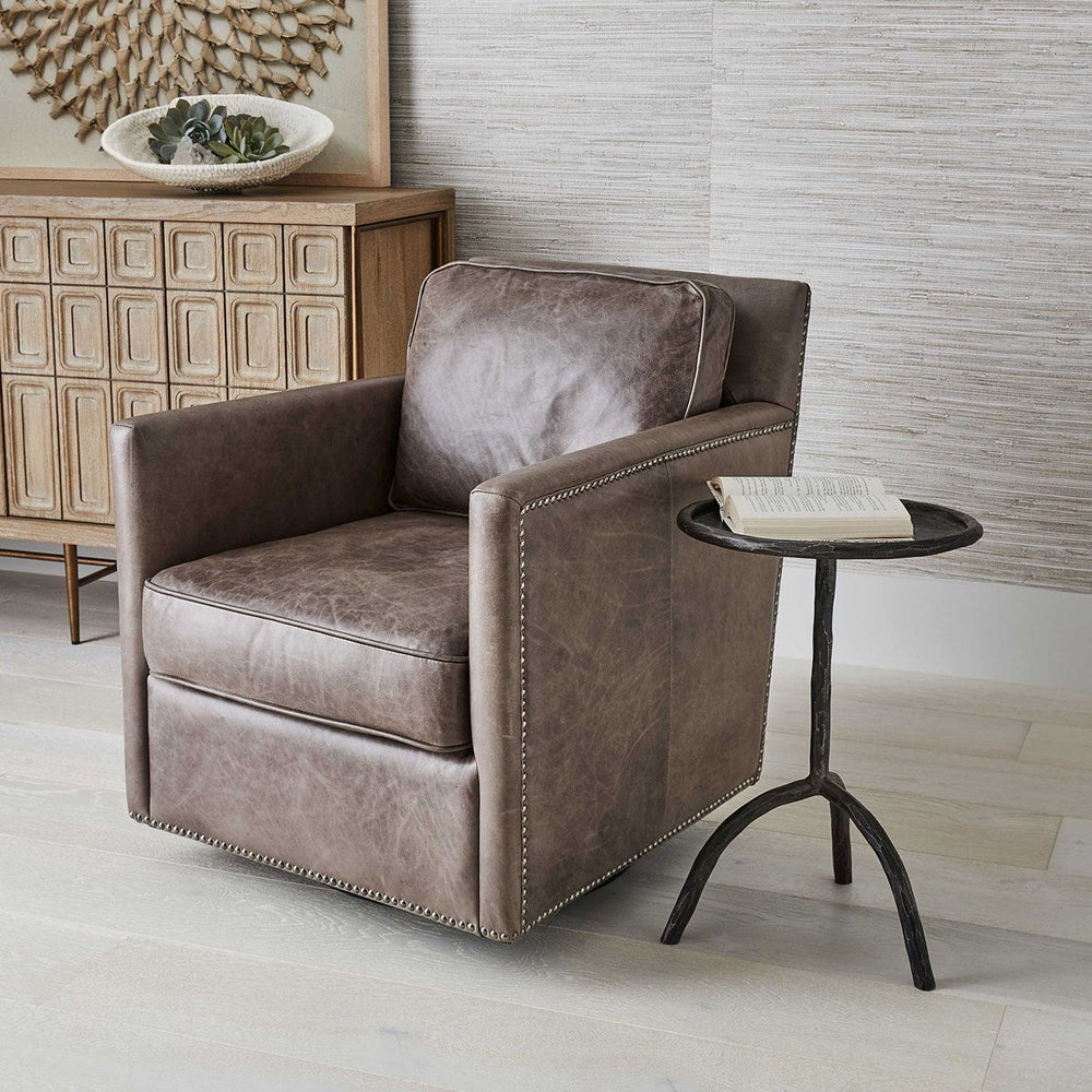 Thick and sturdy cast iron finished in an aged steel featuring a hand chiseled texturing and a recessed hammered iron top.