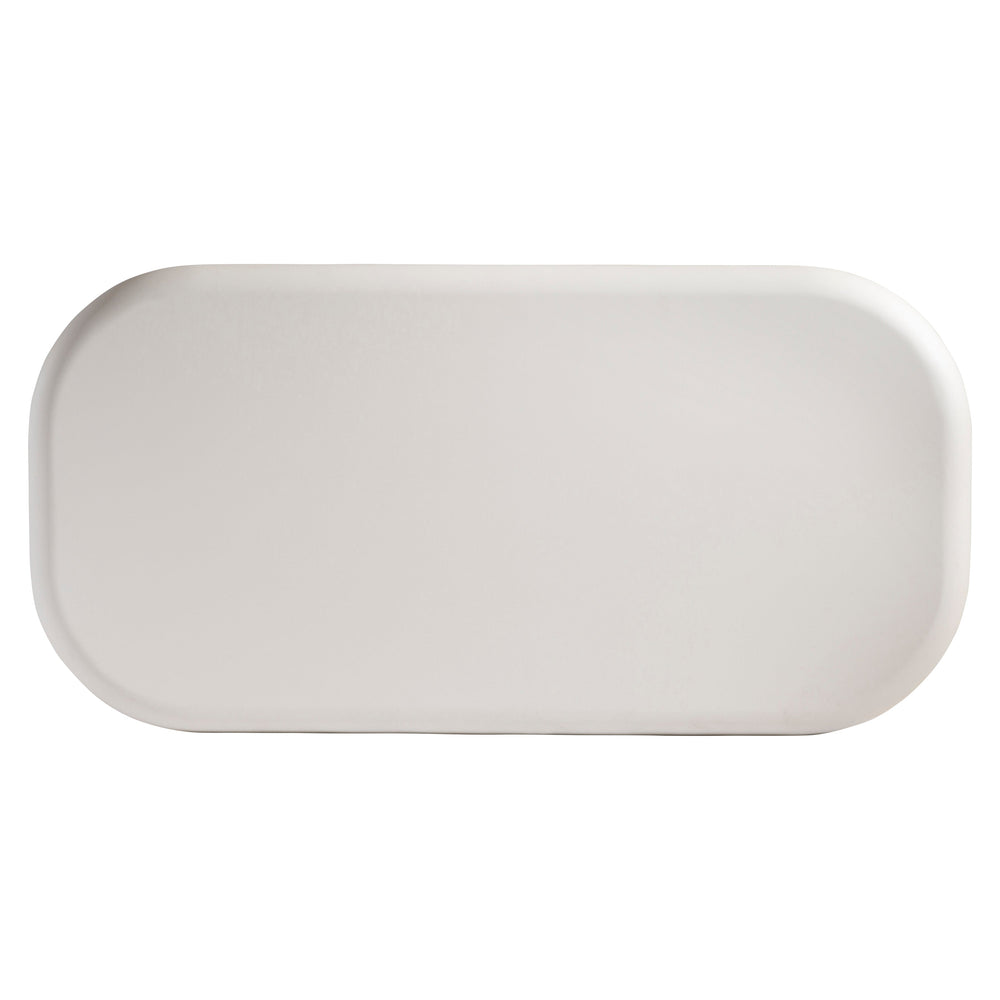 Elemental shapes can craft compelling designs, as proven in the Elia cocktail table. Cast resin is softly shaped into a deeply rounded double base with a racetrack-shaped top. The modern primitive look is bold and beautiful in the Crema faux stone finish.
