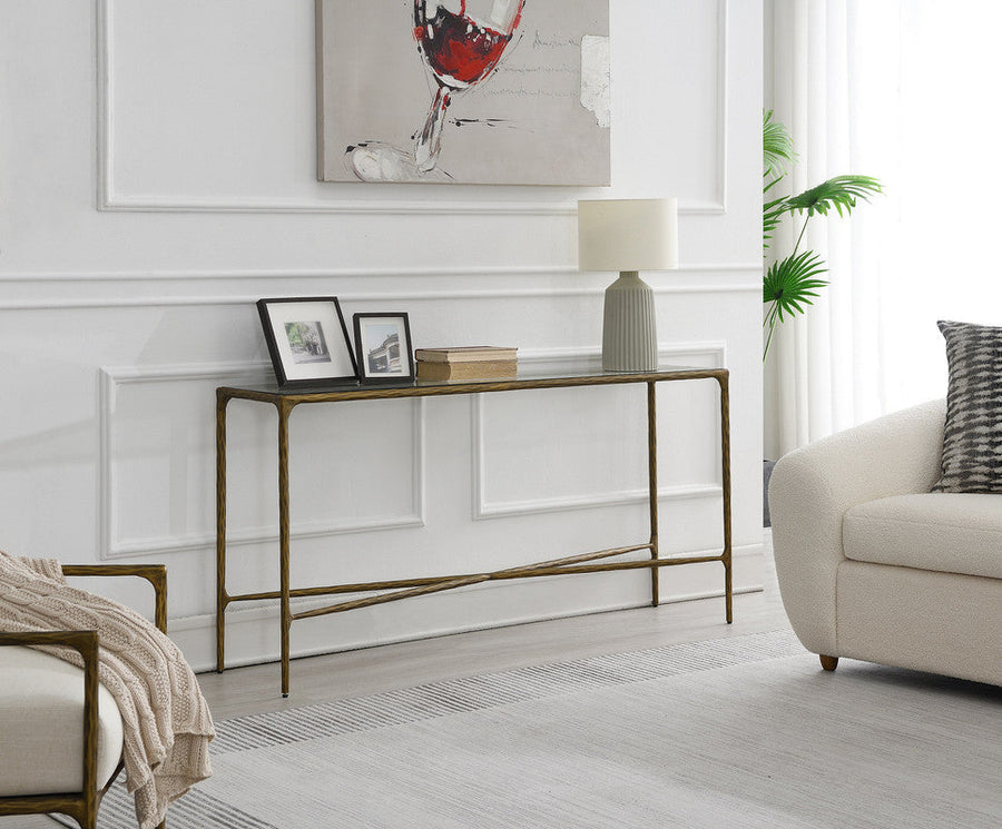 Gold Console Table with Glass Top