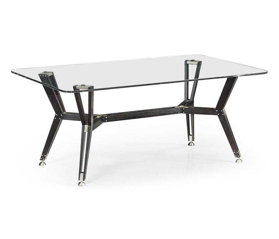 JC Edited - Architects House Collection - Midcentury Style Rectangular Black Mocha Oak Coffee Table with Glass Top