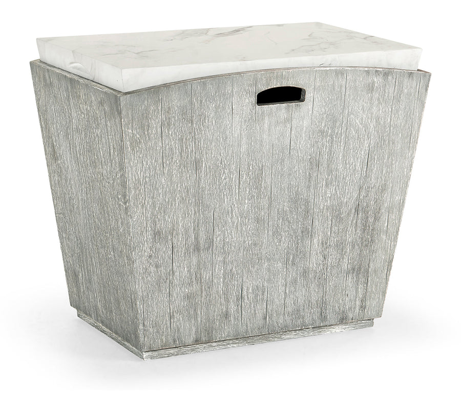 JC Outdoor - Hampton Collection - Rectangular Cloudy Grey & Faux White Marble Storage End Table