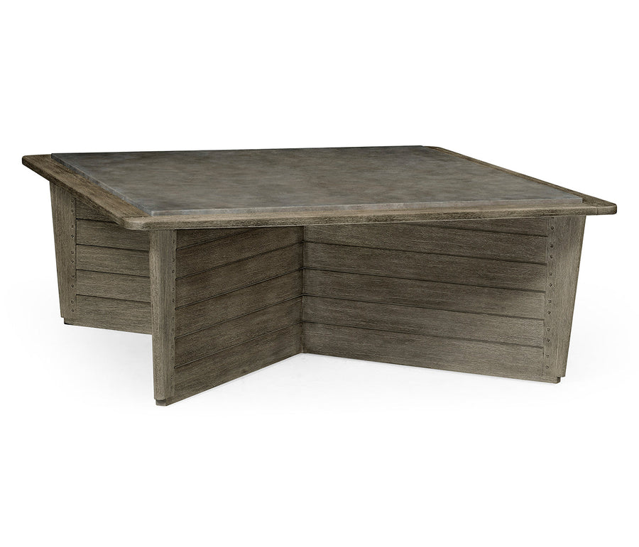 JC Outdoor - Hampton Collection - Square Grey & Concrete Coffee Table with an X-Base