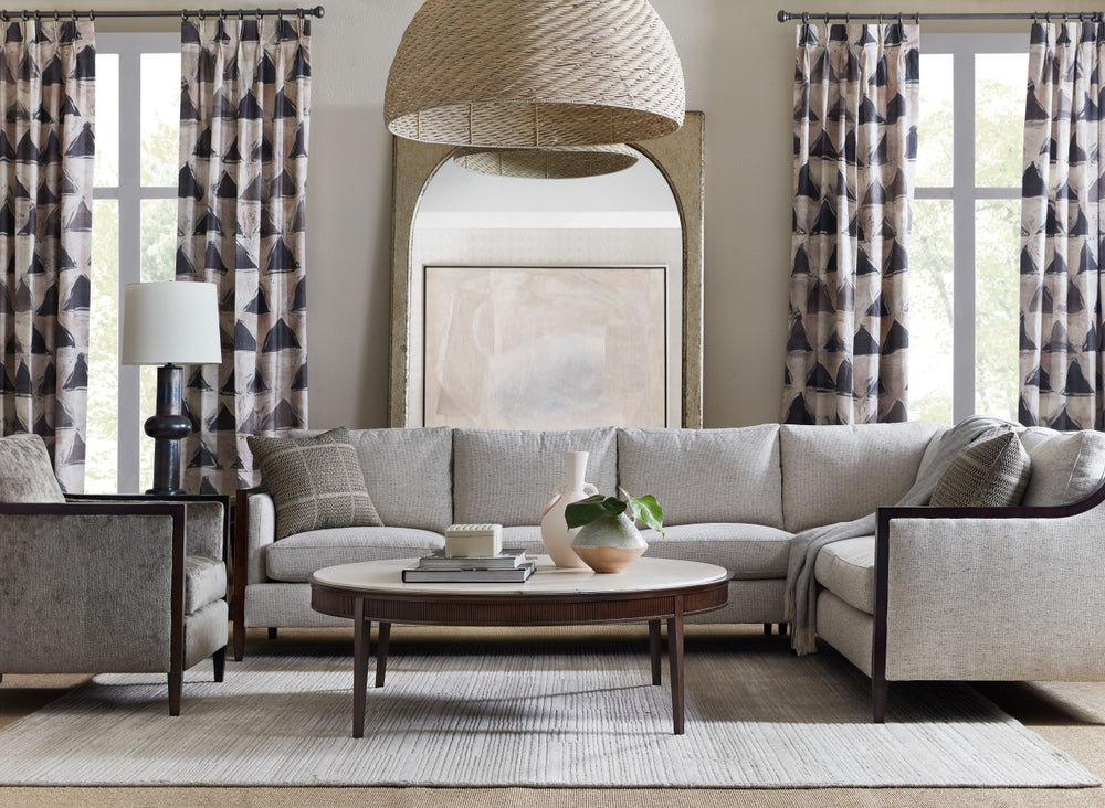 The Lido Round Cocktail Table, crafted from Prima Vera in our Bistre finish and complimented by a beautifully honed inset Crema Marfil marble stone top, features a sophisticated tapered silhouette and reeded carved details.