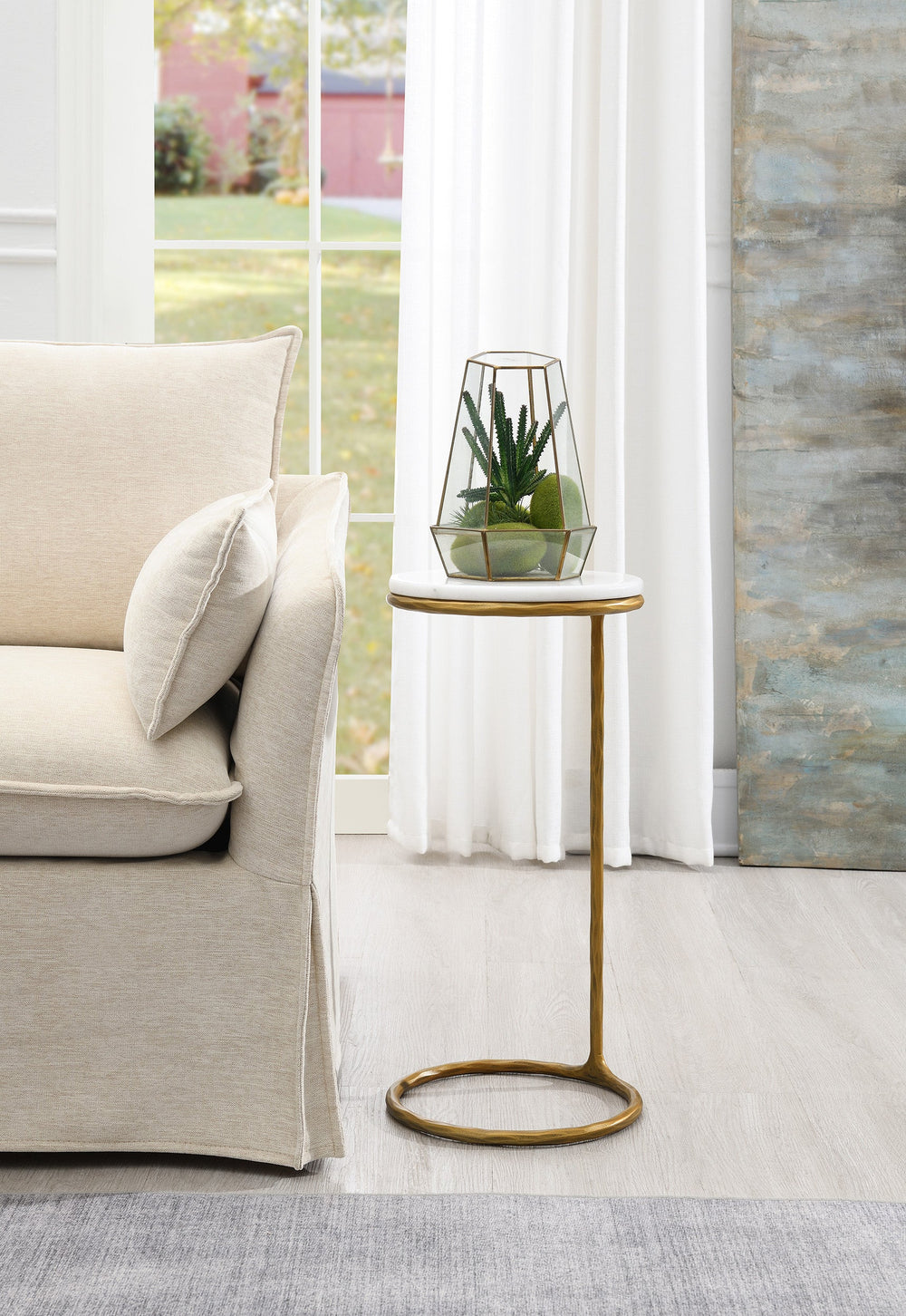 Luxo Marble Accent Gold Table Add elegance and sophistication to any room with the Luxo Marble Accent Gold Table. This stunning piece is made of high-quality marble and features a rich gold finish, making it a statement piece in any home. Its durable and sturdy design ensures that it will last for years to come, making it a worthwhile investment. Not only does it add beauty to your space, but its versatile design allows it to be used as a side table, coffee table, or even a decorative display stand. Elevate your home decor with the Luxo Marble Accent Gold Table.