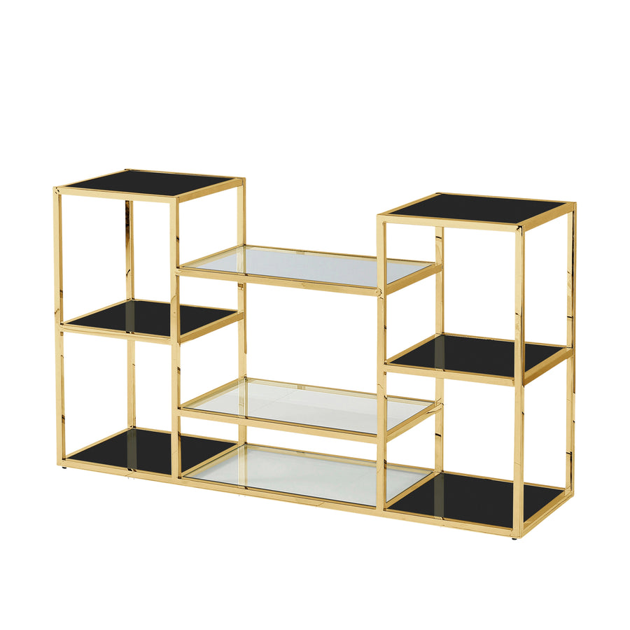 STAINLESS STEEL, CONSOLE TABLE, GOLD/BLACK GLASS
