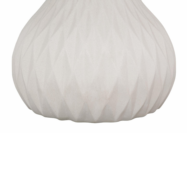 Stunning indoors or outdoors, the Tulum table brings glam style to your living experience. Masterfully crafted from concrete, this round coffee table measures 27.5 inches in diameter and boasts a gorgeous diamond-pattern design on its pear-shaped pedestal base.