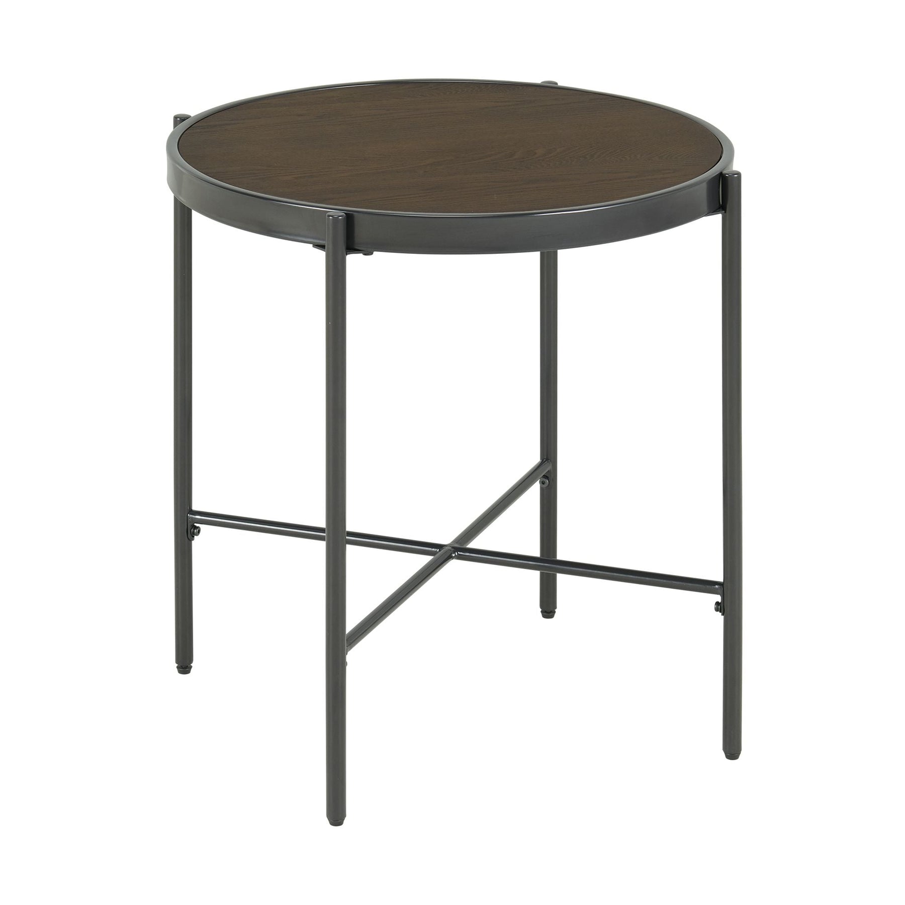 The Vienna End Table is the perfect addition to your living area. The end table has a rounded dark brown, wooden table top and black, iron table base. The natural, wood grain detailing on the table top will give you a warm inviting vibe. Tying in the black, iron table base with cross stretchers provides amazing support in securing the table top. The simplicity of this piece does not require much accessorizing however, arranging this table next to a love seat will feel comfortable. For a complete living room statement, add the marble and wooden coffee table for affect.