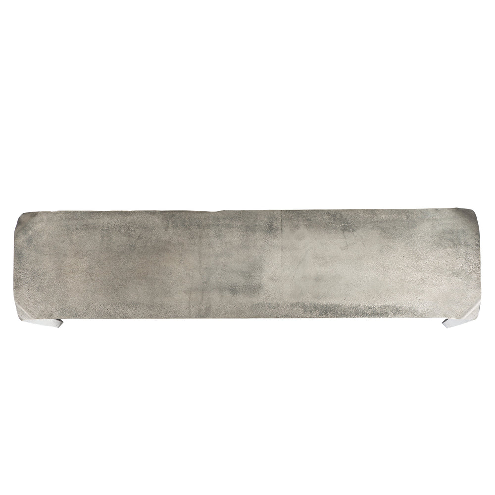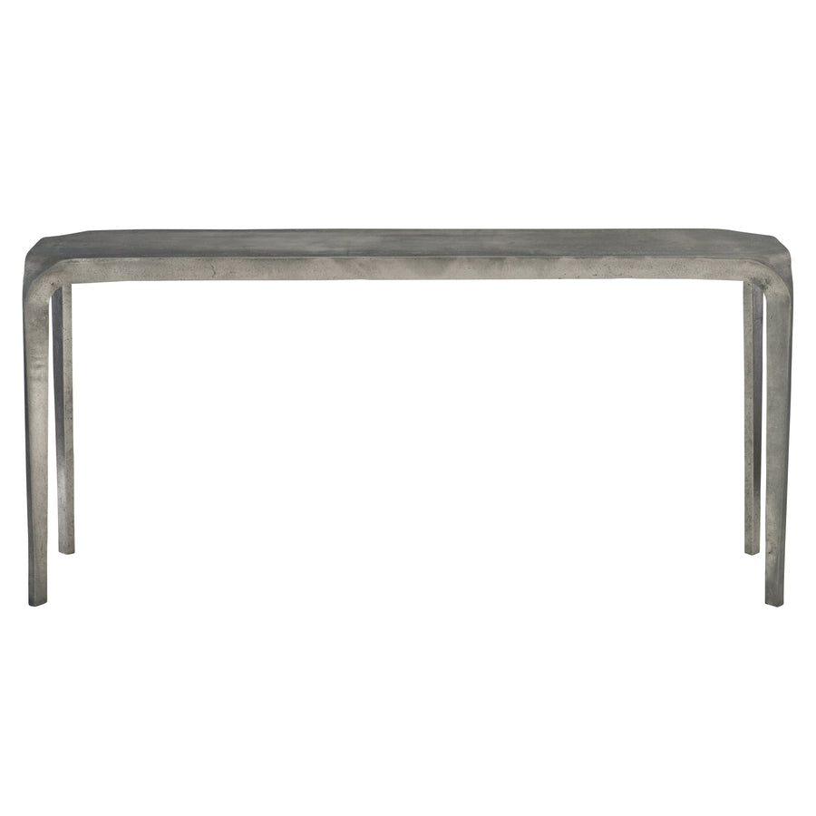 Bernhardt Interiors offers high-design furniture with an eclectic edge. The Union console table creates a slender silhouette from a single piece of cast and fabricated aluminum in graphite finish. The surface bears organic marks and variations from the creation process, adding texture and visual appeal while drawing attention to the artistry involved in its formation.