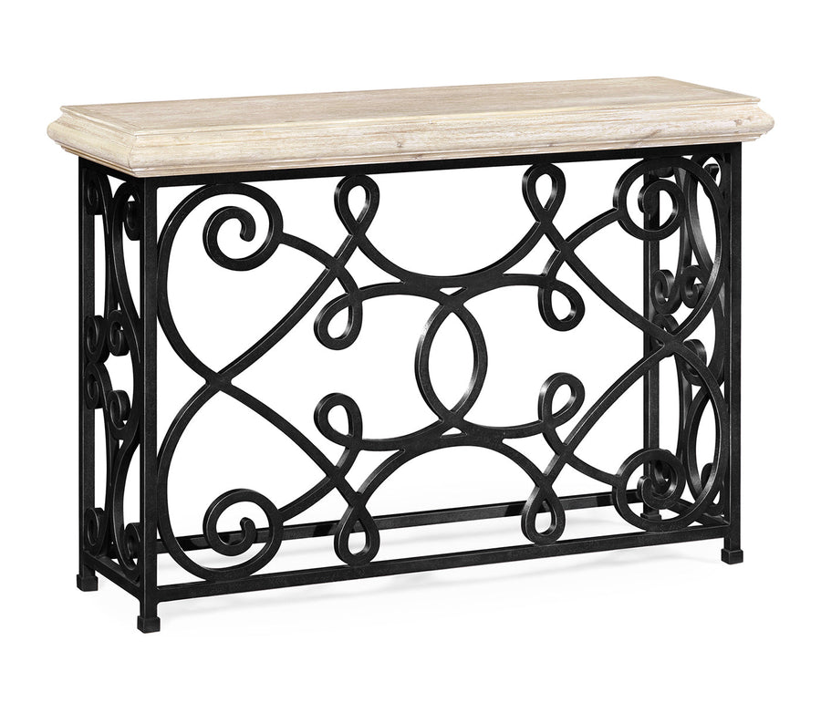 JC Edited - Artisan Collection - 54" Width Rectangular Limed Wood Console with Wrought Iron Base
