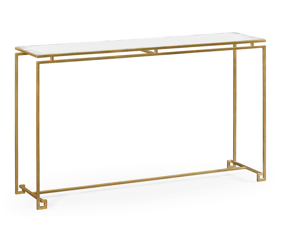 JC Edited - Simply Elegant Collection - Gilded Iron Large Console Table with An Antique Glass Top