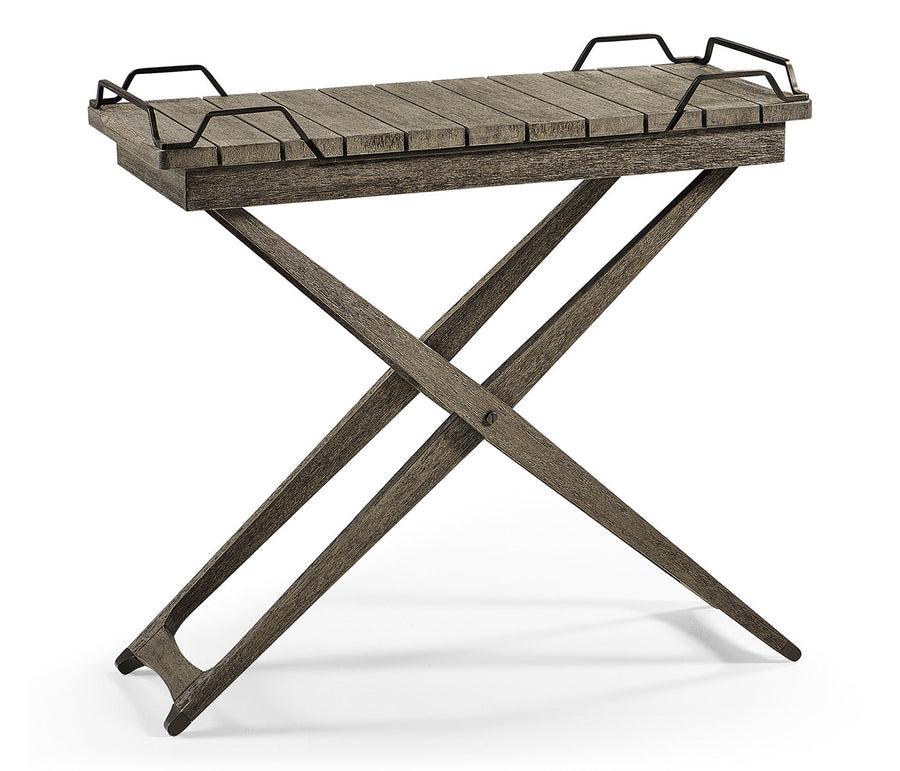 JC Outdoor - Hampton Collection - Rectangular Folding Grey & Antique Brass Tray Console Table