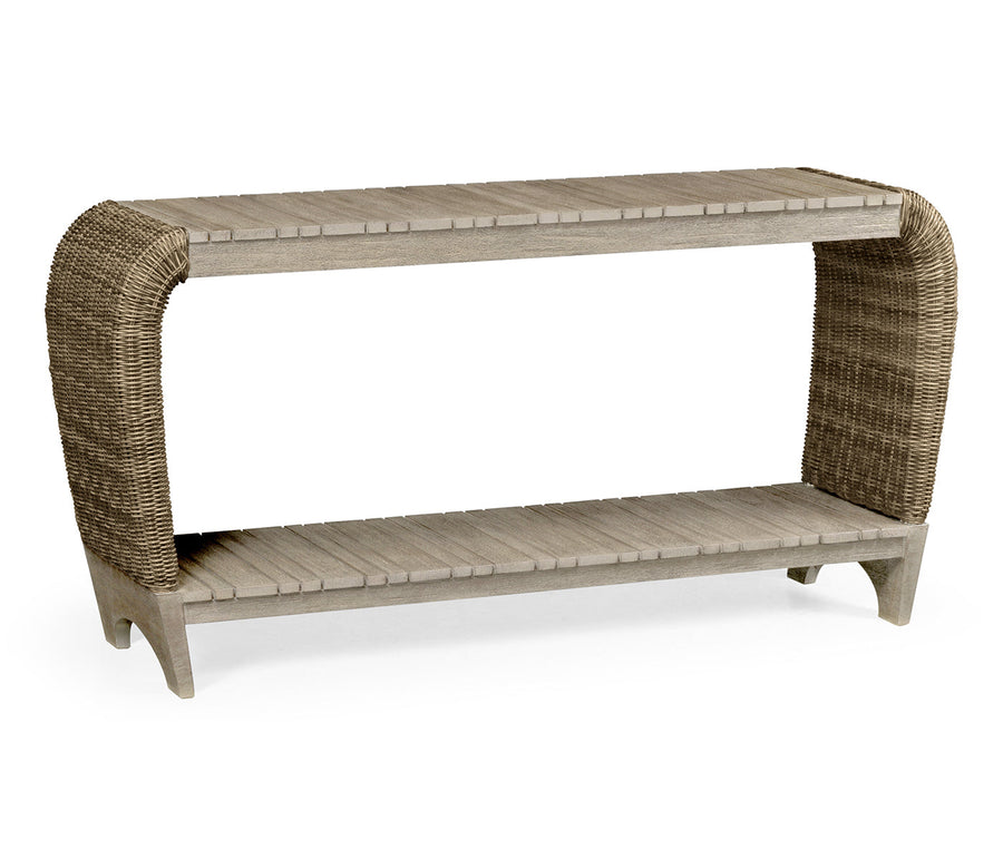 Name Rectangular Navajo Sand & Rattan Console Table with Curved Ends
