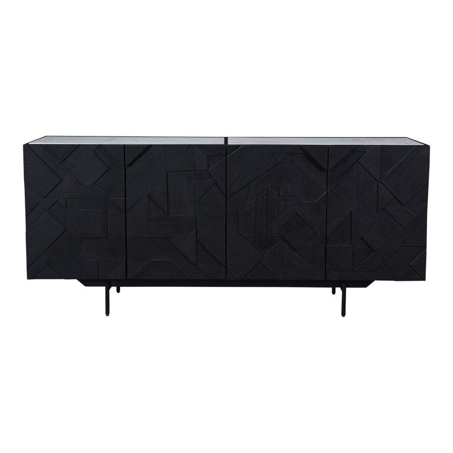 Fitted with barn doors, this sideboard buffet is large and spacious. The Kattan Sideboard is made with sustainable mango wood, which is both strong and durable. The white marble top finishes off the look, making it a head turner for any contemporary modern décor.