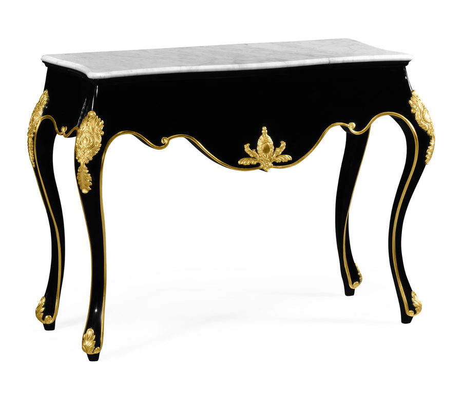 Monte Carlo Collection - Black Laquered Console Table with White Marble Top