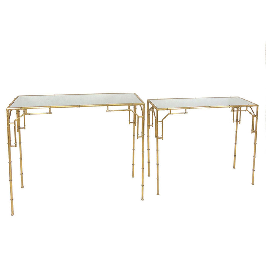 S/2 GOLD METAL CONSOLE TABLES, MIRROR