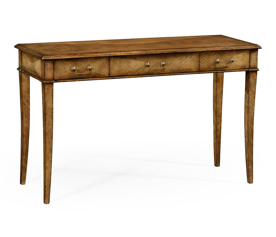 Satinwood veneered console of classically simple form with three drawers set above sweeping and tapering legs. (Old salescode: 492054)