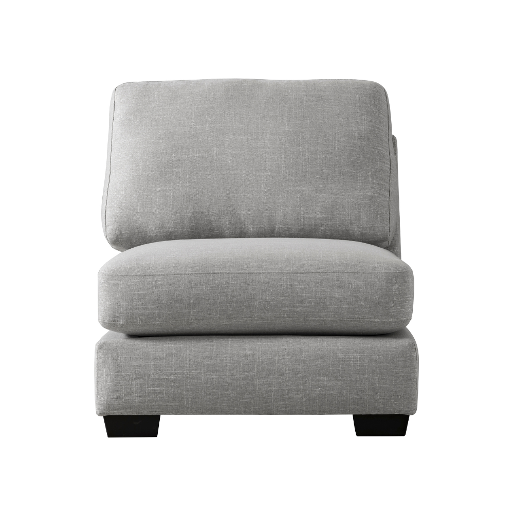 Get comfort in our trendy and spacious sectional, with its clean lines, sleek material and modern style. With plush grey fabric and charming cushions, this cozy and grand Sectional by Roots Furniture is definitely what you need in your home.