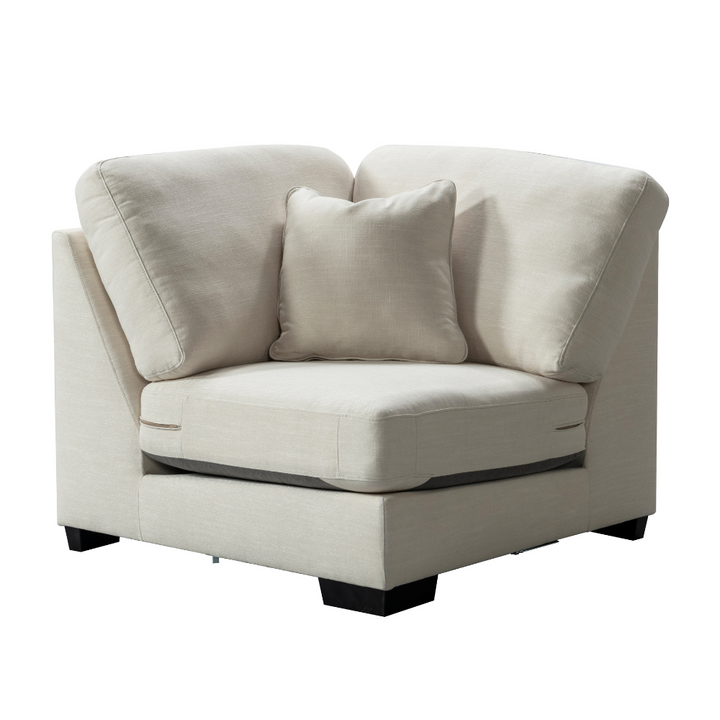 Get comfort in our trendy and spacious sectional, with its clean lines, sleek material and modern style. With plush grey fabric and charming cushions, this cozy and grand Sectional by Roots Furniture is definitely what you need in your home.