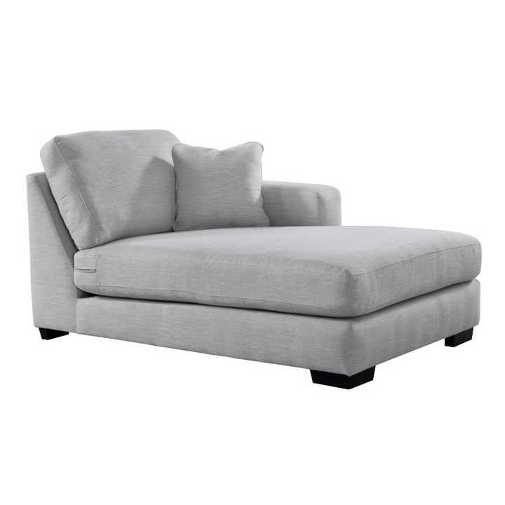 Get comfort in our trendy and spacious sectional, with its clean lines, sleek material and modern style. With plush grey fabric and charming cushions, this cozy and grand Sectional by Roots Furniture is definitely what you need in your home.