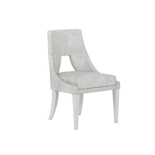 Elegant curves are dressed to impress in finely tailored pewter chenille. This contemporary dining chair evokes the feeling of a couture ensemble, featuring gracefully rounded sides with a fashion-inspired cutout in the back.