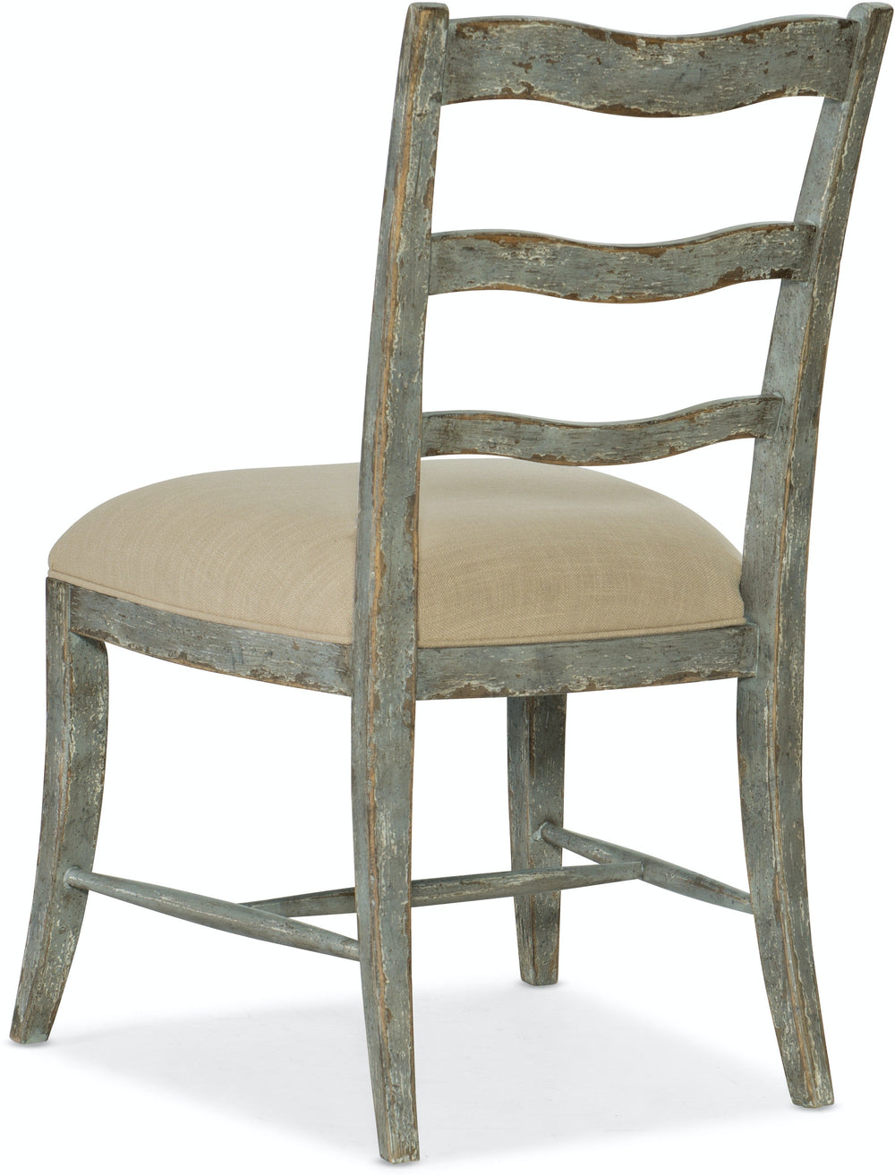 The La Riva is a classic ladderback chair with a French twist, distinguished by soft curves and stylish flair. Crafted of Oak Veneers, the La Riva Upholstered Seat Side Chair is finished in an organic Oyster color in a versatile neutral light gray tone, and the cozy upholstered seat is covered in Chimay Linen, an ecru-colored performance fabric.