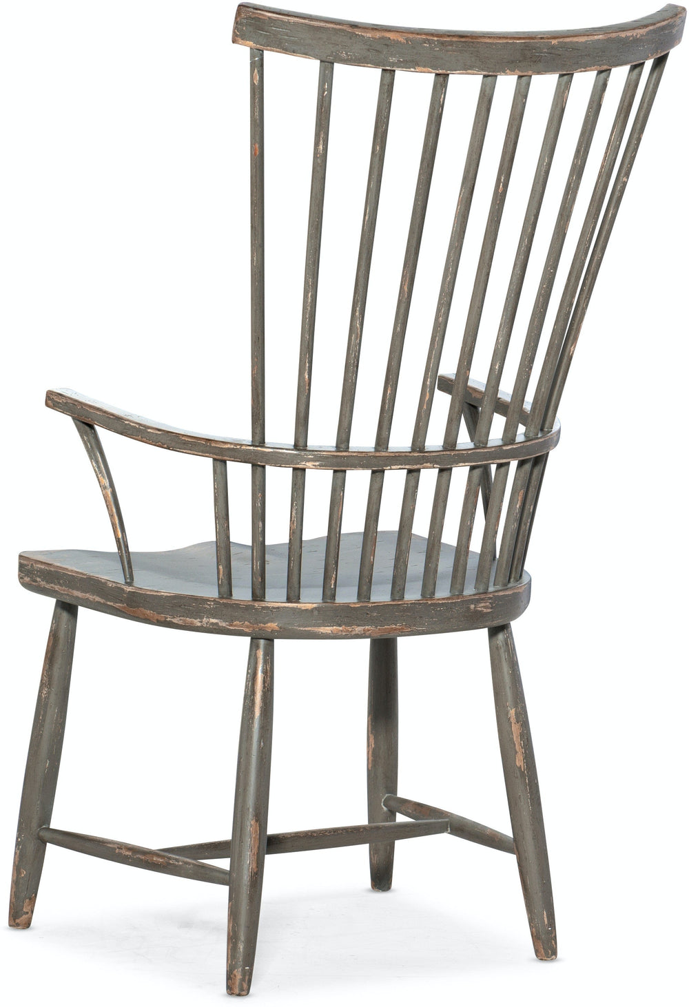 The classic spindle-back Windsor chair gets a European provincial flair with the exquisite silhouette of the Marzano Windsor Arm Chair. Crafted of Hardwoods, the dark gray Pottery finish has an organic and vintage appeal.