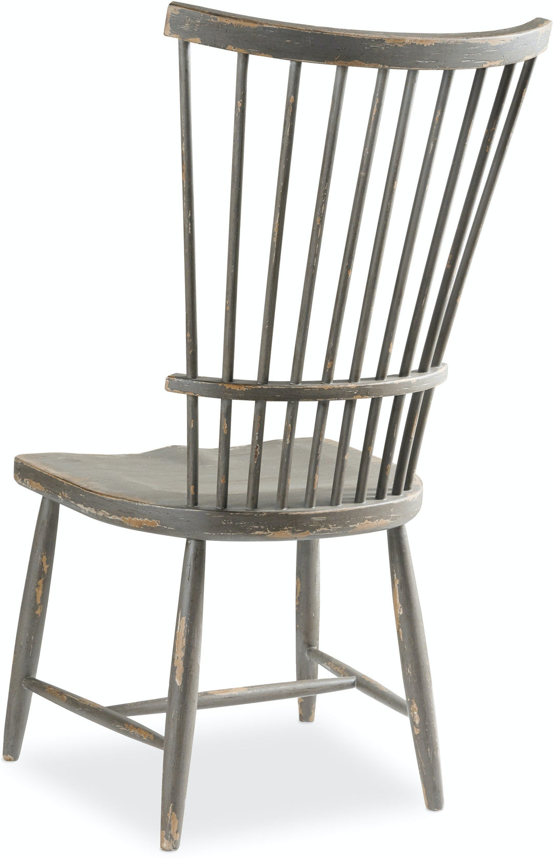 The classic spindle-back Windsor chair gets a European provincial flair with the exquisite silhouette of the Marzano Windsor Side Chair. Crafted of Hardwoods, the dark gray Pottery finish has an organic and vintage appeal.