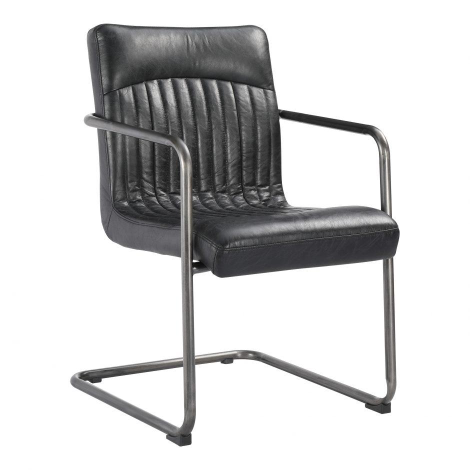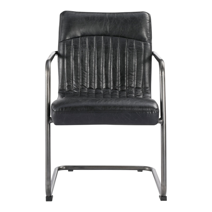 The Ansel dining chair features an industrial iron frame and easy-to-clean distressed top grain leather upholstery. The perfect chair for adding some originality and industrial design to your home. Outfit your entire table with this simple yet stunning design. Available with arms or without as a dining chair.