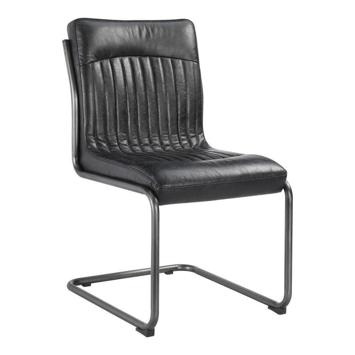 Industrial leather luxury. The Ansel dining chair’s sturdy iron frame is a bold statement, with distressed easy-to-clean top-grain leather upholstery bringing an elevated comfort to the setup. With ultra-soft foam padding ensuring a restful seat, allow Ansel to add contemporary cool to your dining area.