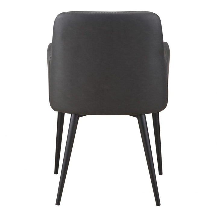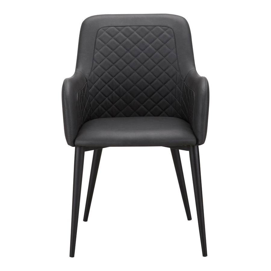 A diamond of dining design. Both refined and contemporary, the Cantata dining chair is made with sturdy steel legs and durable, easy-to-clean vegan leather upholstery. The diamond tufted back and armrests give this seat a flair of elegance, making it an ideal chair for long dinners and the occasional card game.