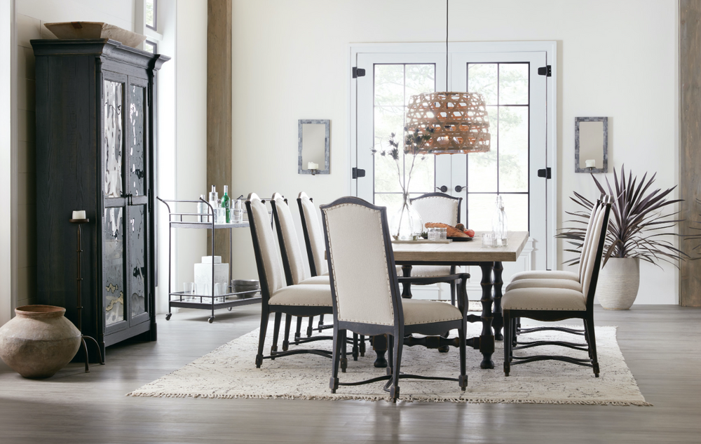 The delight is in the details of the Belgian-inspired Ciao Bella Upholstered Side Chair. From the delicate, curved, intersecting stretcher base to the tiny tack-nail trim outlining the soft gray-white seat and back to the scalloped seat base, this versatile chair is timeless and inviting. The exquisite aged black complements the Tuscan gray-white fabric perfectly.