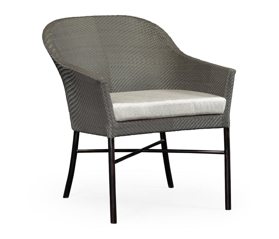 JC Outdoor - Panama Collection - Rounded Back Mocha Steel & Dark Grey Rattan Dining Chair with Cushion