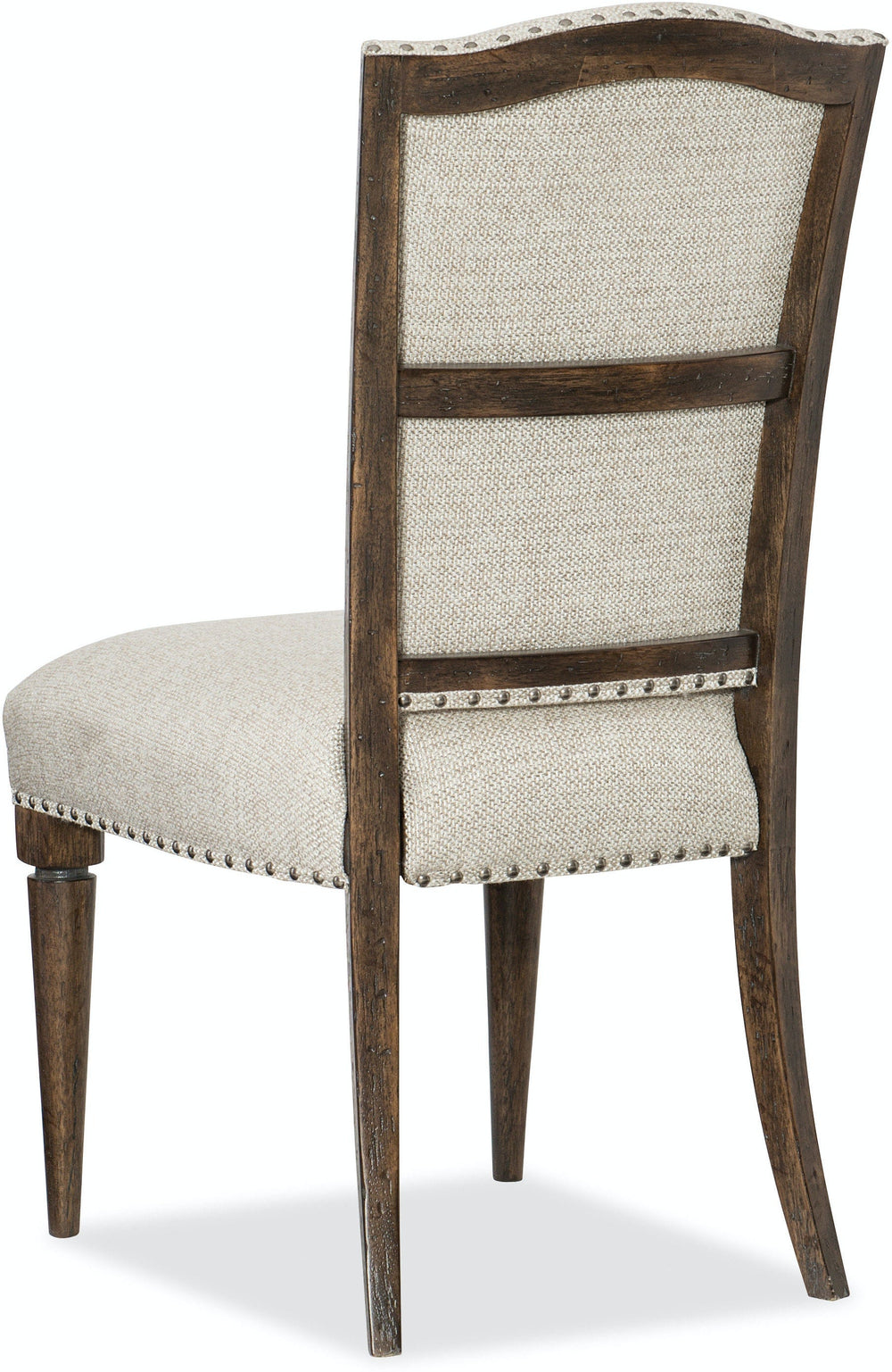Rustic chic and inviting, this Roslyn County Deconstructed Upholstered Side Chair is in classic farm-to-decor style. The exposed beams in Dark Walnut contrasting with the soft creamy upholstered seat and back create drama and evoke authentic trusses in reclaimed barns.