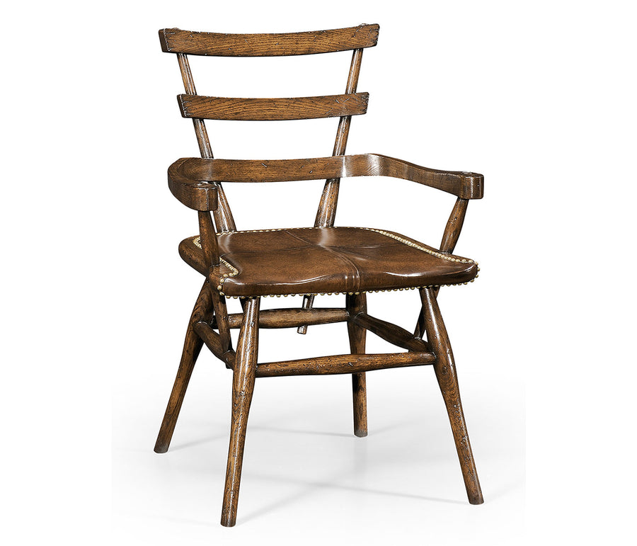 Sherwood Oak Collection - Country Style Dark Oak Arm Chair with A Dark Antique Chestnut Leather Seat