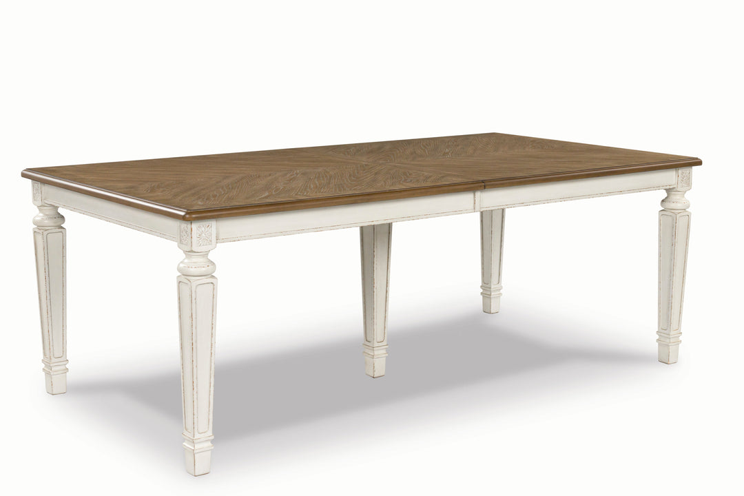 The Realyn Dining Set includes 12 chairs for a complete and comfortable dining experience.