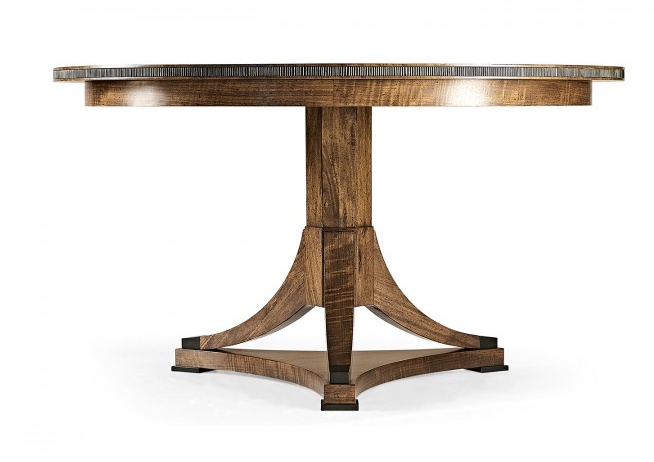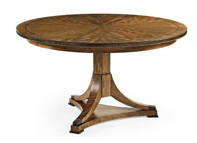 The Round Caledonian Daniella & Burl Walnut Dining Table is a beautifully designed piece of furniture that exudes elegance and sophistication. It features a round shape, providing a warm and inviting atmosphere for dining and socializing.