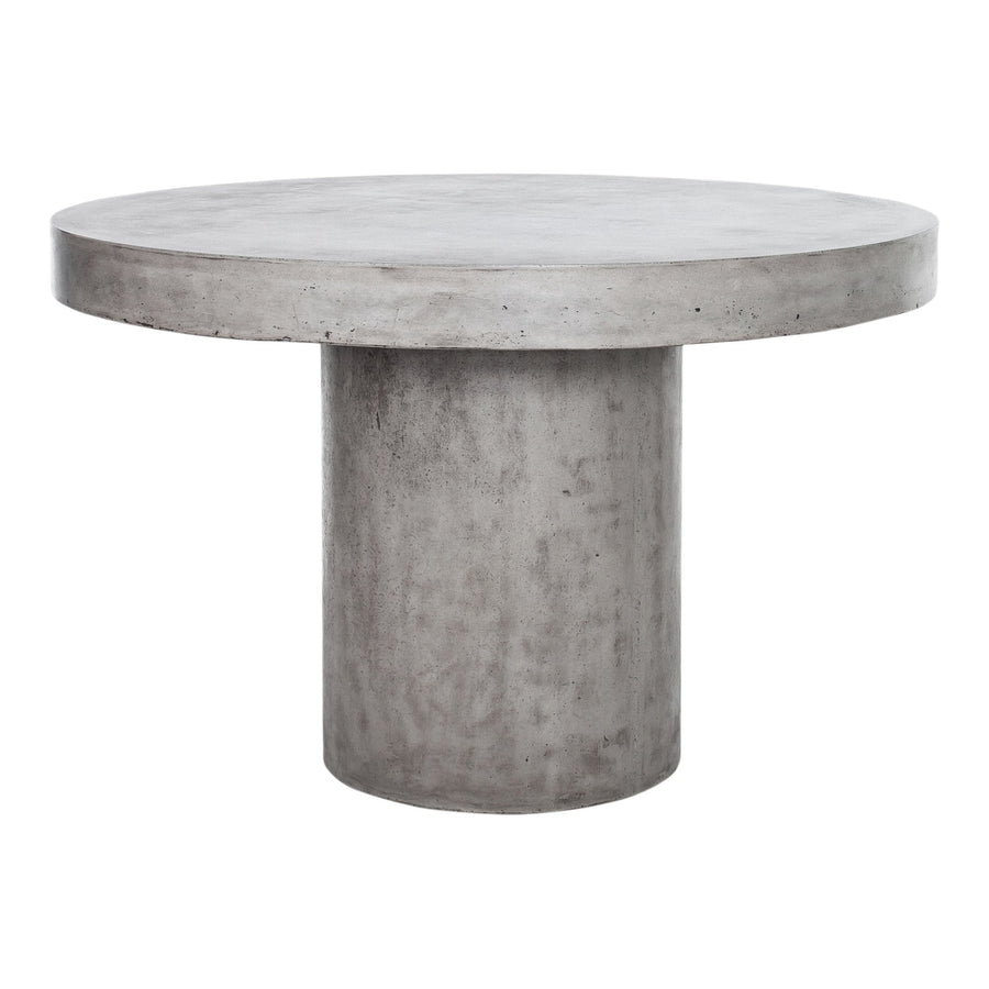 Keen on concrete to bring the outdoors a little closer. A hard material for softer contrast, the Cassius outdoor patio table is the perfect transitional piece for alfresco living. Both durable and eye-catching, this round pedestal table is made from fiber-reinforced concrete that helps to prevent cracking. Here to give your outdoor dining area a sleek, modern look with a hefty pillared base and a thick, matte, circular tabletop. Ideal for any garden or patio setting, this dining table works indoors as well as a stately, contemporary design.