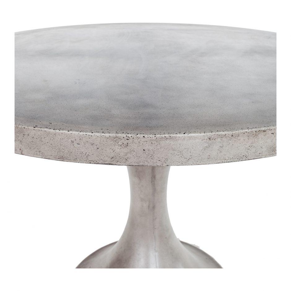 The Isadora is a 43.25" round dining table with a concrete base and a mix of cement and natural fibers top.