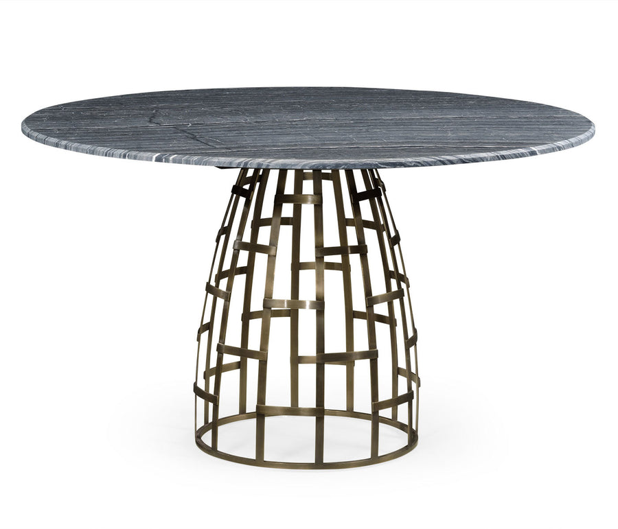JC Outdoor - Panama Collection - 51" Round Geometric Dome Brass Dining Table with a Grey Marble Top